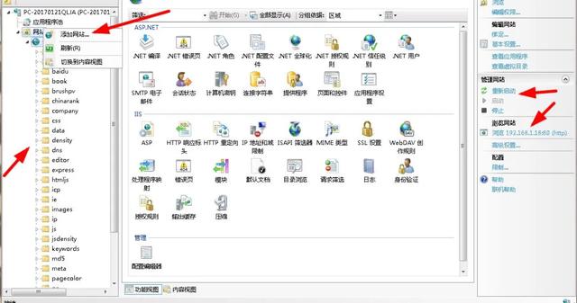 打开IIS管理器,控制面板----Internet信息服务管理器,然后就可以看到如下图: