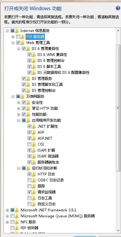 这个我相信大家都会了,控制面板---程序和功能-----打开或关闭Windows功能,如图: