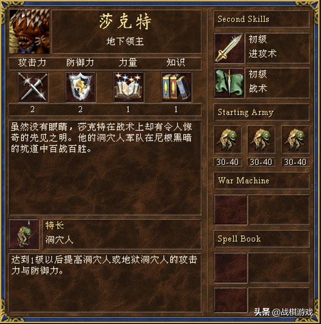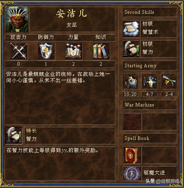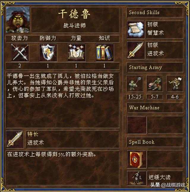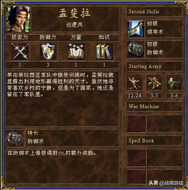 地下城的艾拉切,一张丑陋的瞎子脸,一副炮灰的模样。但是由于特长弩车,且有车有证,技能树完美,攻防均衡,加上初始带进攻术。这个将领其实非常实用。