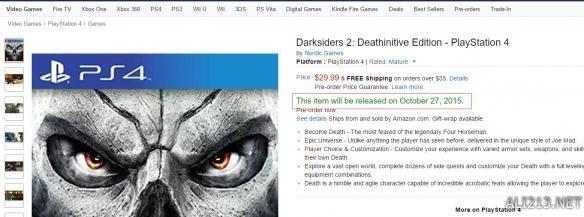 尽管Nordic Games还没有正式公布《暗黑血统2:终极版(Darksiders 2:Death initive edition)》游戏的发售日,但是美国多家重量级零售商都将发售日写成了10月27日。