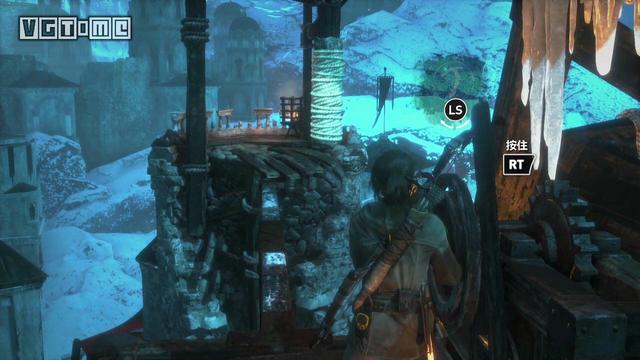 使用丢掷钩斧攀爬到营地对面的冰墙后,我们就进入游戏的终章了。