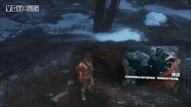 在完成收集蘑菇的任务后,跟随求生本能来到山洞里,把熊引到洞外战斗。这一次我们手上已经有了毒箭,在拉弓状态下按RB即可射出毒箭,命中之后可以短暂封住熊的行动,这时候再用普通箭支进行攻击,重复几次即可将其击毙。如果在战斗过程中箭不够用了,可以长按RT进行快速制作,毒箭则是长按RB制作,当然前提是你兜里得有足够的蘑菇。