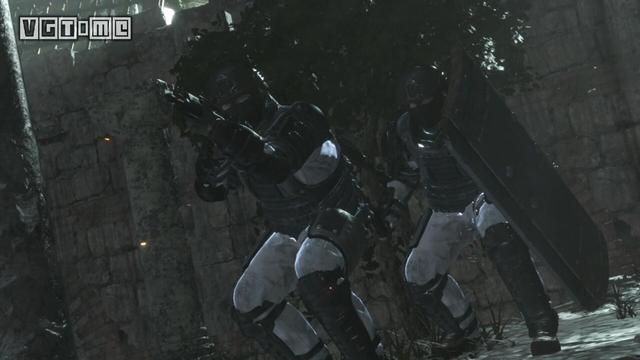 来到战火激烈的城门后,将连续面对多场强制战斗,尽可能地寻找场景内的爆炸物吧。当持盾士兵和其他敌人一同出现时,可以先无视盾兵,因为他手持警棍只在近距离有威胁,移动又慢,完全可以KO其他人后再专心对付他。普通武器对他效果都不是太好,相比之下闪避后的反击是最有效率的手法了。