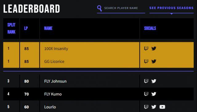 目前,100T战队的青训中单选手Insanity和GG战队的上单选手Licorice,以85分并列第一名,暂时领先于其他选手。不过,很多选手紧随其后,他们的胜点分数也十分接近。