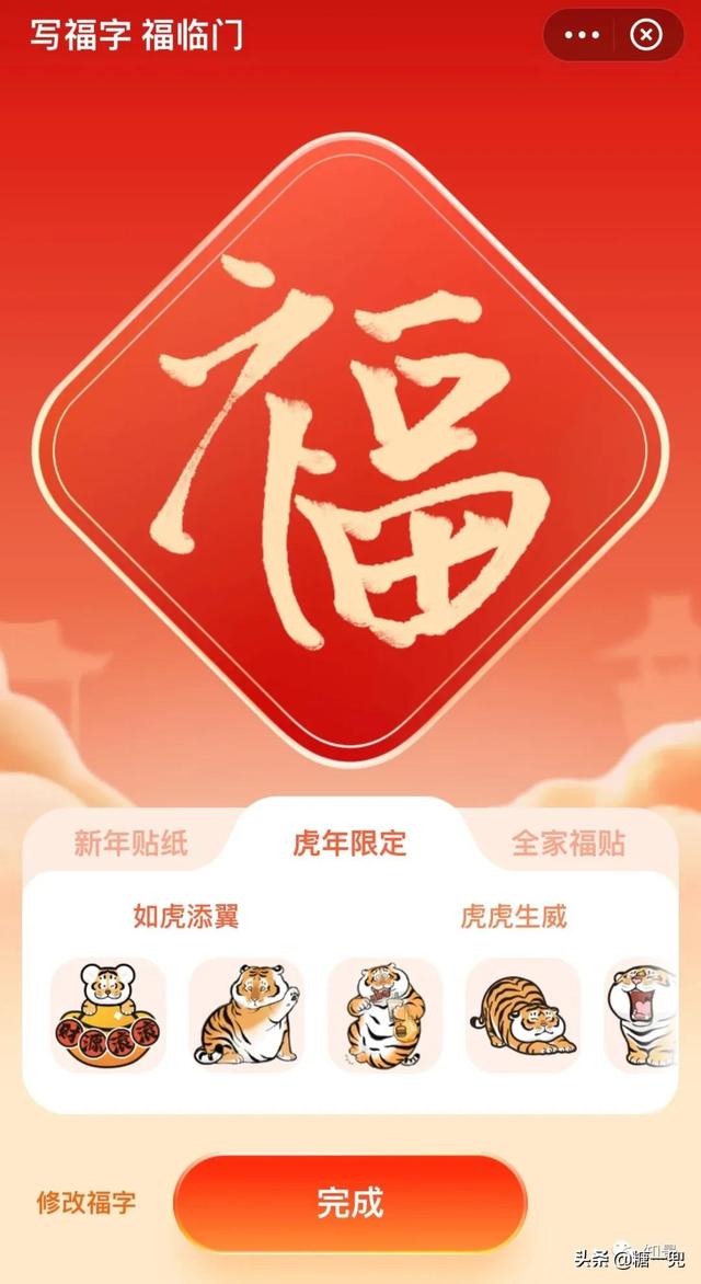 福气贴纸贴好,点“完成”吧。