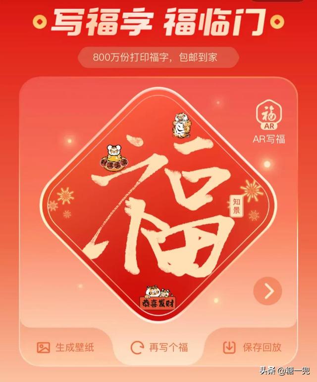 精心设计完的福字,不仅可以生成手机壁纸,还可以免费打印出来送到家哦。