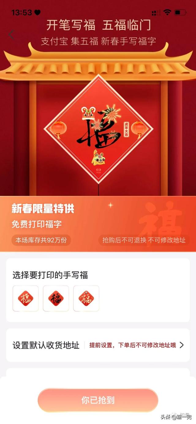 3. 可以免费打印福字快递送到家。