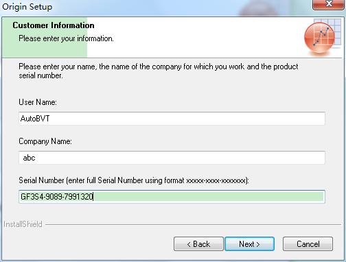 5. 用户名、公司名称可以随意输入如AutoBVTech,cbb等都可以,注册码:GF3S4-9089-7991320,然后单击“Next”,如下图所示