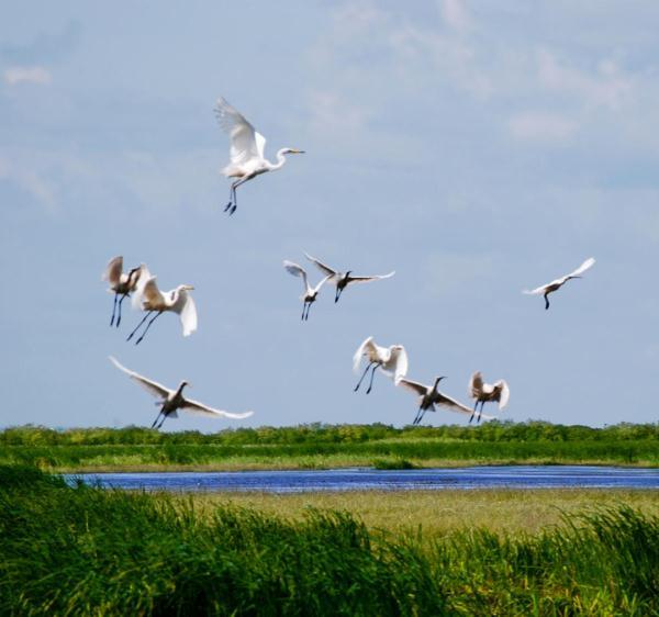 兴凯湖湿地是国际重要湿地,与俄罗斯境内湿地相连成一片,是世界最大的三块湿地之一。湿地内野生动植物资源极为丰富,有白尾海雕、长耳鸮、苍鹭等世界重要候鸟285种,中国国家一级保护鸟类9种、二级保护鸟类41种。