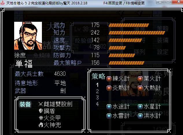 第一章 反董卓同盟军 故事从ケイヨウ(晋阳?)开始。反董卓联盟集结在晋阳宫殿,盟主袁绍[皇帝]命曹操[刘备]去讨伐董卓的先锋华雄[袁术],一旁刘备[曹操]慷慨地将关羽张飞[朱灵路昭]借与曹操,然后曹仁曹洪[关羽张飞]两兄弟也加入了。曹操的实力自然强得没话说,但曹仁曹洪就很废了,偏偏两位取代的角色是关羽张飞,曹仁接下了千里走单骑、华容道等好戏,总觉得不伦不类的,曹洪则担当进取东吴[刘璋的西川]的主将,想扔也扔不掉……依次击败第一队李傕郭汜李肃,第二队徐荣李儒李肃,第三队华雄徐荣李傕郭汜李儒[袁术大军],敌军强度略有上升。关羽说,这回斩了华雄怎么要跑那么老远,回去酒都不温了…… 刚回晋阳,关羽张飞就拍拍屁股溜了,在城里四处打听,反董卓同盟军也全无去向,怎么回事?有种不祥的预感。突然有个老头儿变成华雄[车胄]杀过来,赶紧砍了他,这家伙难道会复活魔法吗?长得倒是人五人六的。城门口程昱[陈登]加入,初期用用比陈登强多了。一出城就遇到了董卓吕布李儒贾诩的大军,怪不得同盟军全逃跑了,曹操孤掌难鸣被全军击溃,只剩程昱跟随。无奈之下找ジョウゲン[郑玄]要书信,去袁绍的老家评理去。 乘船去河北,曹操的船好大啊,就是比刘备气派。在冀州找到袁绍,责怪他太不够义气,自己逃跑拿我当垫背啊,现在骨肉失散你看该怎么办?袁绍自知理亏,只得借出颜良帮曹操找亲戚。有了颜良后曹军底气十足,反攻董卓[曹操],第一寨李傕郭汜张济,第二寨樊稠李儒李肃,都轻松扫平,第三寨吕布[关羽]亲自坐镇,颜良想,只要不是那关羽,我还能怕谁,不料一出手还是被秒了。回冀州换来文丑,也落得同样下场。颜文二人哭诉,为什么我们总是那么命苦啊……镜头转到身处空城エンジョウ[宛城]的曹仁[关羽],这位老兄怎么就沦落到这儿了呢?夫人带有提高行军速度的曹操的爱骑绝影[赤兔马]。过五关斩六将,和原作没有区别,1.9版将敌将改成了董卓部将,才有了从董卓魔爪逃脱的感觉。和关羽相比,曹仁不能当军师,只能靠赤心丹恢复,原本在他身上有不少没被你拿掉吧,而且赤心丹恢复得少,不得不用胡班家书逃过王植的火攻。途中的洛阳被改作了成都,为了迎合最终战灭蜀而不得已的吧。好不容易到了河北,却被吕布[夏侯敦]追杀,但这里毕竟不是董家地盘,两回合后夏侯渊[张辽]出现,吕布见势单,不得不撤退。到山寨收得夏侯敦[周仓],青州斩蔡阳,收得曹洪夏侯渊[张飞赵云],二夏侯能力出众,兵力也多,可以一直用到终盘!在典家庄,派出典韦[关平]去冀州给曹操报信,典韦感觉弱了点,但作为寥寥两个斧系成员之一,仍可以长时间得到重用。至此曹氏亲信集合完毕,曹操心满意足准备扬长而去,袁绍心中极其不爽,我为你曹阿瞒折了上将颜良文丑,怎么能那么便宜让你开溜,于是派出谋士沮授郭图在城门暗杀,好在曹操刚为典韦买了柄剁肉斧,轻松突围。第一章结束。 后记:第一章主要是曹操抗击董卓的过程,可以说屡战屡败,到最后都没有亲手战胜董卓。原作中刘备三兄弟失散被嫁接到曹氏三兄弟身上,虽然他们史实中并没有失散过,但这样的确体现出在董卓火烧洛阳,其他同盟军却不作为时,曹操孤军深入追董,被杀得大败而归的惨状。人物方面,曹仁曹洪接关羽张飞的戏总觉得不够格,后几章会体现出来,如果换成夏侯兄弟更能胜任,但考虑到他们日后总会离队,让这两位能力最差的离开总比失去夏侯兄弟好。典韦和夏侯敦的登场可以换一下,典韦才适合在原本周仓的山寨里落草呀。