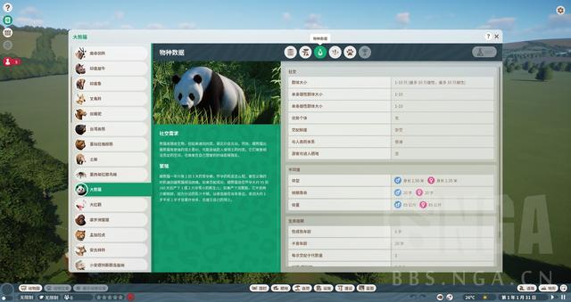 动物生活的环境也有讲究,并不是一股脑把好看的植物堆在栖地里,就能让动物们满意。每种动物都有自己理想的生态环境,像是生活在我国的珍惜国宝大熊猫,理想的植物范围是亚洲温带植物,就需要在植物标签页中,筛选大陆属于亚洲生物群系温带的植物安放在大熊猫的栖地内才能满足大熊猫。
