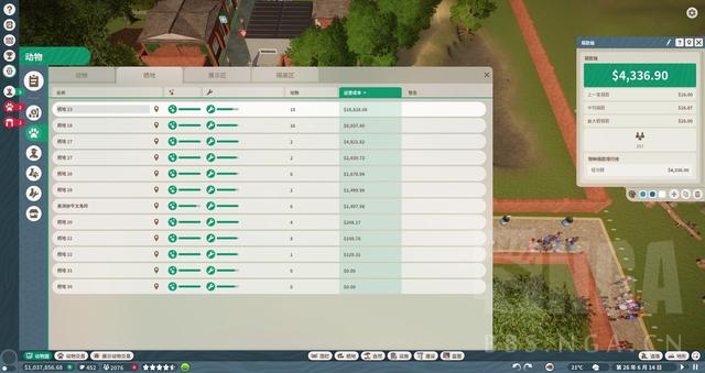 游戏中加入了数据分布图[H]系统,可以用以查看动物福利、栖地情况、员工幸福度、对游客负面影响等等数据。