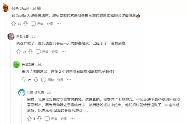 不论是劣质的游戏质量,还是这些天来发生的各类糟心新闻,粉丝们的忍耐早已到达极限,纷纷冲到官方渠道下面高喊“RNM,退钱!”,有人收到了属于自己的退款,而更多的人却没能等来消费者应有的权利。
