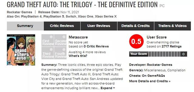 就像《赛博朋克2077》让很多等待到最后的玩家很失望一样,GTA三部曲也在2021年的年底,闹出了一场彻头彻尾的笑话。