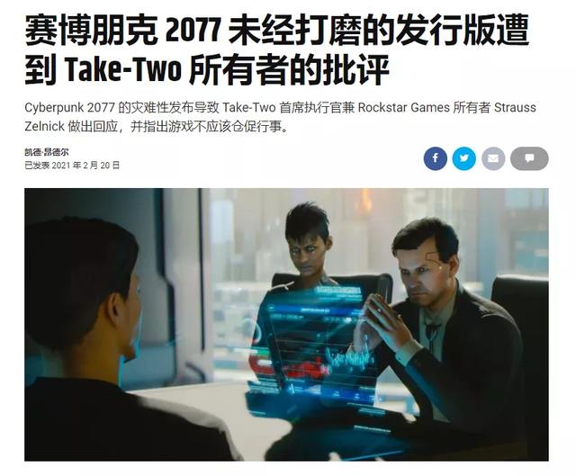 今年早些时候,R星的母公司Take-Two的CEO就曾锐评《赛博朋克2077》,并一再强调“我们旗下的游戏都追求完美”;如今风水轮流转,这次的“GTA:2077”也该开始考虑什么时候开放退款渠道了。
