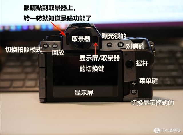 取景器/显示屏的切换键。大部分人在拿到相机,一般会怼着取景器,自拍一张装个逼