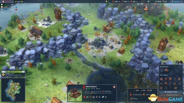 3、前期资源以收集食物为主。有了食物保障前期冬天就不怕了,差不多农场配上谷仓就可以直接开宴会增加资源收入,前期资源多了造的建筑也多。