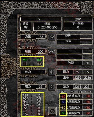 除了怪物,还可以查看装备的一些数值比如物品等级、符文编号等。如图
