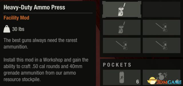 可以生产子弹,顺便一提有化学分支弹药学可以提升产量(还能造c4)。收集齐这五个mod妈妈再也不用担心我没子弹了。