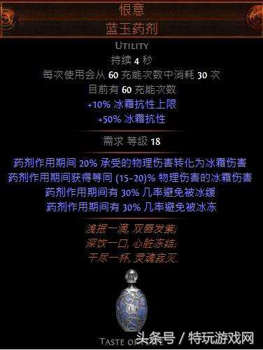 等到达了海妖之窟后,就可以回城换技能了,这里建议大家去找杂货商买一个法术技能烈炎风暴来练级,这个技能属于法术,更加契合我们天赋加点,而且刷图效率和打BOSS的效率比冰霜之刃相比也差不了多少。