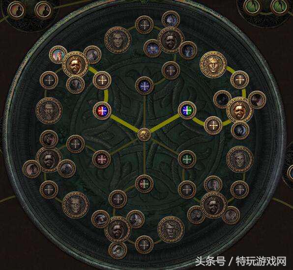 另外刺客起始点的加点部分,这里要给第一次玩贵族的萌新科普一下,贵族的第四次升华可以在前几次升华的基础上,点出一个XX职业之道,这个升华可以让你从该职业的起始天赋点开始去点天赋,可以省掉沿路的很多天赋点,这里就是在第四次升华中点出了暗影刺客之道,前期大家只要顺着左边的天赋从圣堂一路走到女巫即可,记得一定要在30级,做完第三章任务拿到震波图腾时点出先祖魂约这个天赋,这样双图腾可以极大的加强清图的效率。