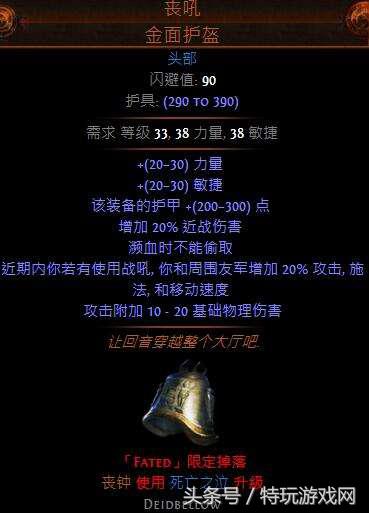 然后一边插图腾一边打怪一边跑,等跑到禁灵监狱这张地图后,从门口的传送阵回城,找一件有两个红色孔的2L装备,给先祖卫士插上近战伤害扩散这颗辅助宝石,如果你又三个红色孔的3L装备,就再插上一颗附加火焰伤害。