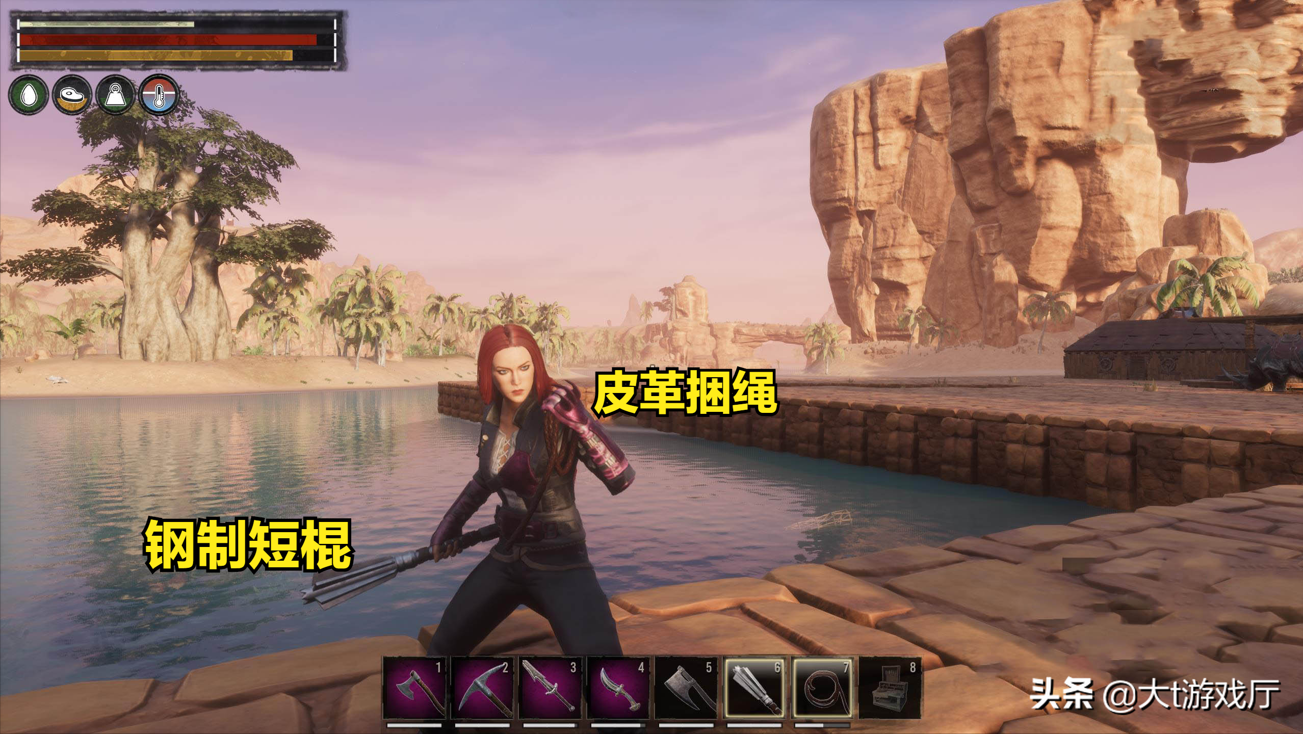 准备好之前制作的皮革捆绳和钢制短棍。