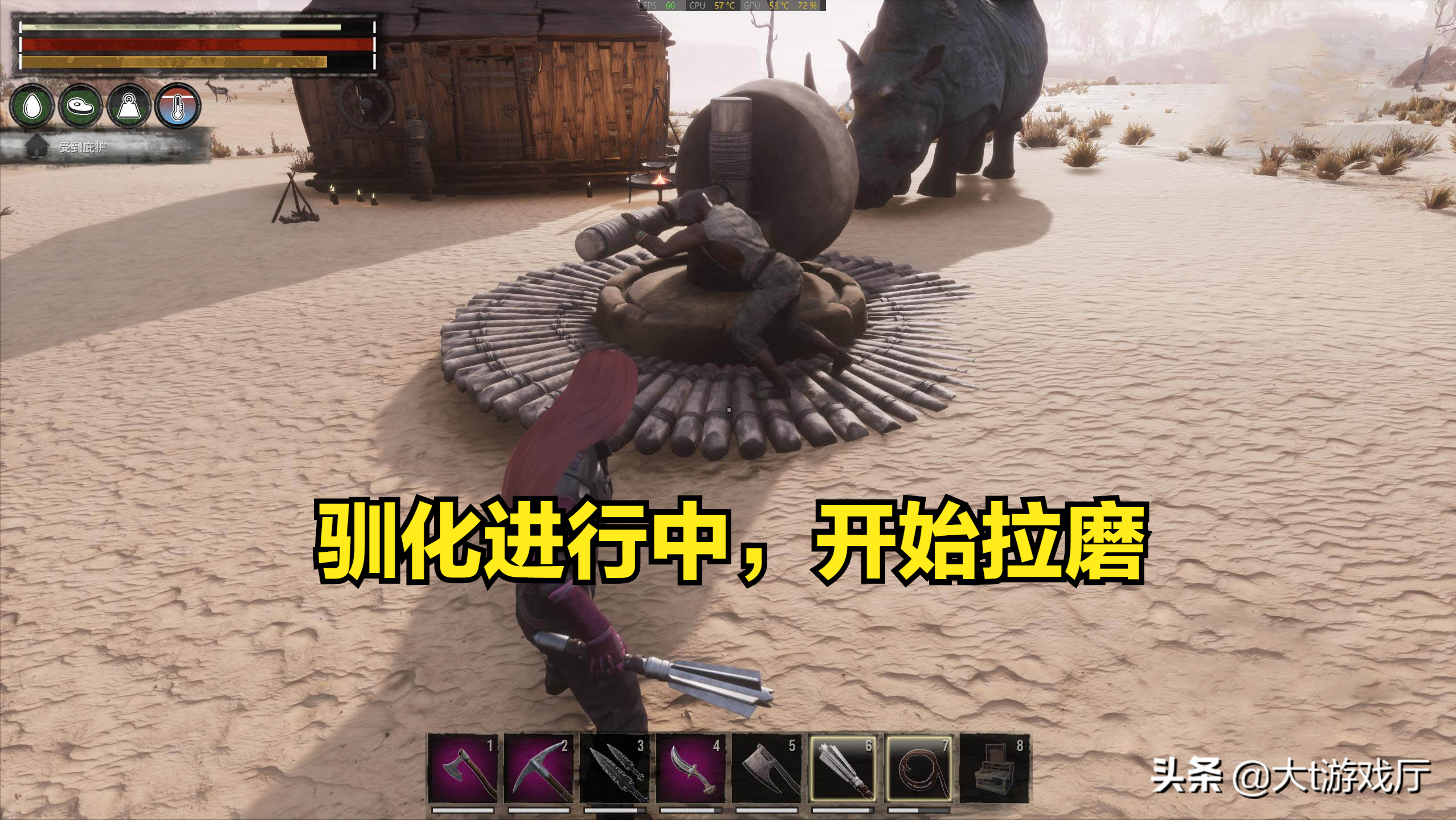 当他下面的进度条加满后,就会被驯化成功,并会在“痛苦之轮”上消失。