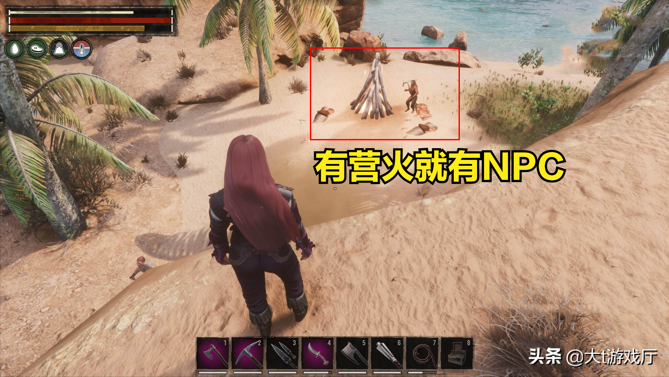 去寻找奴隶,只要地图上有营火的地方,就必有人类NPC,而奴隶的全部来源,也正是人类NPC。