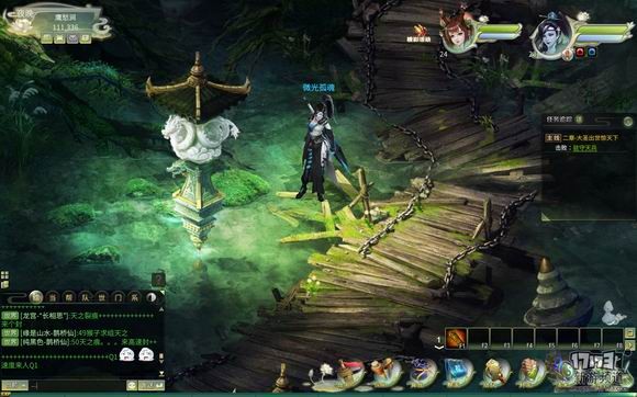 场景的氛围到了,但是实际的画面效果上其精度并不特别到位,原因主要集中在建模不够有质感,这可能是因为场景既是2D人物又是3D的关系,导致在移动时会产生不协调感。回合制游戏的UI要求比起时下的MMO以及ARPG显然有着更高的要求,不但要设计精巧,还必须与游戏整体融为一体让玩家感受到这就是独属于这款游戏。而通过本次我们对《灵山奇缘》画面的印象,中国风绝对是本作在视觉上的灵魂,风格总体也说的过去,只是因为清晰度的问题会产生一种与页游对比的冲动。