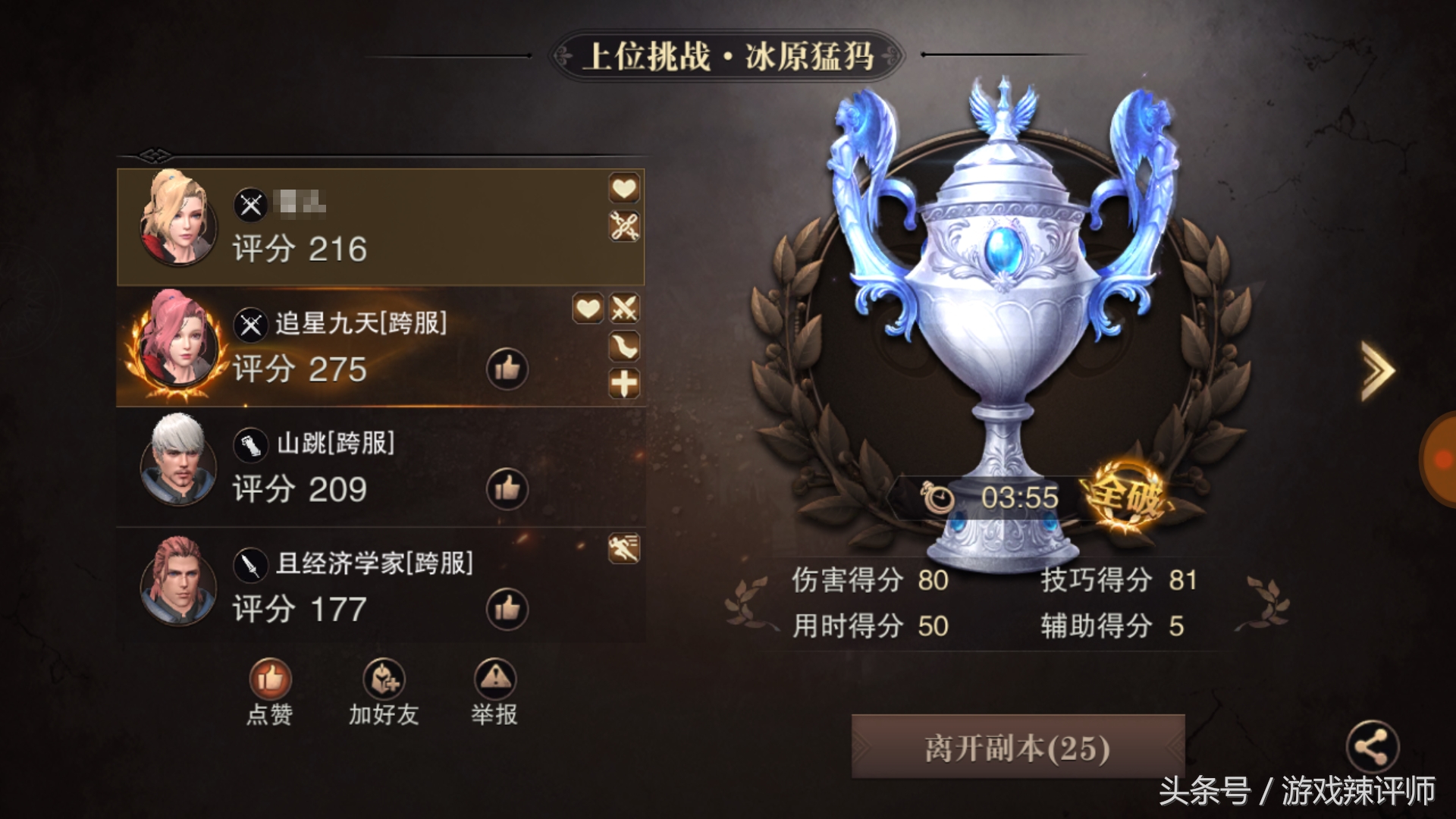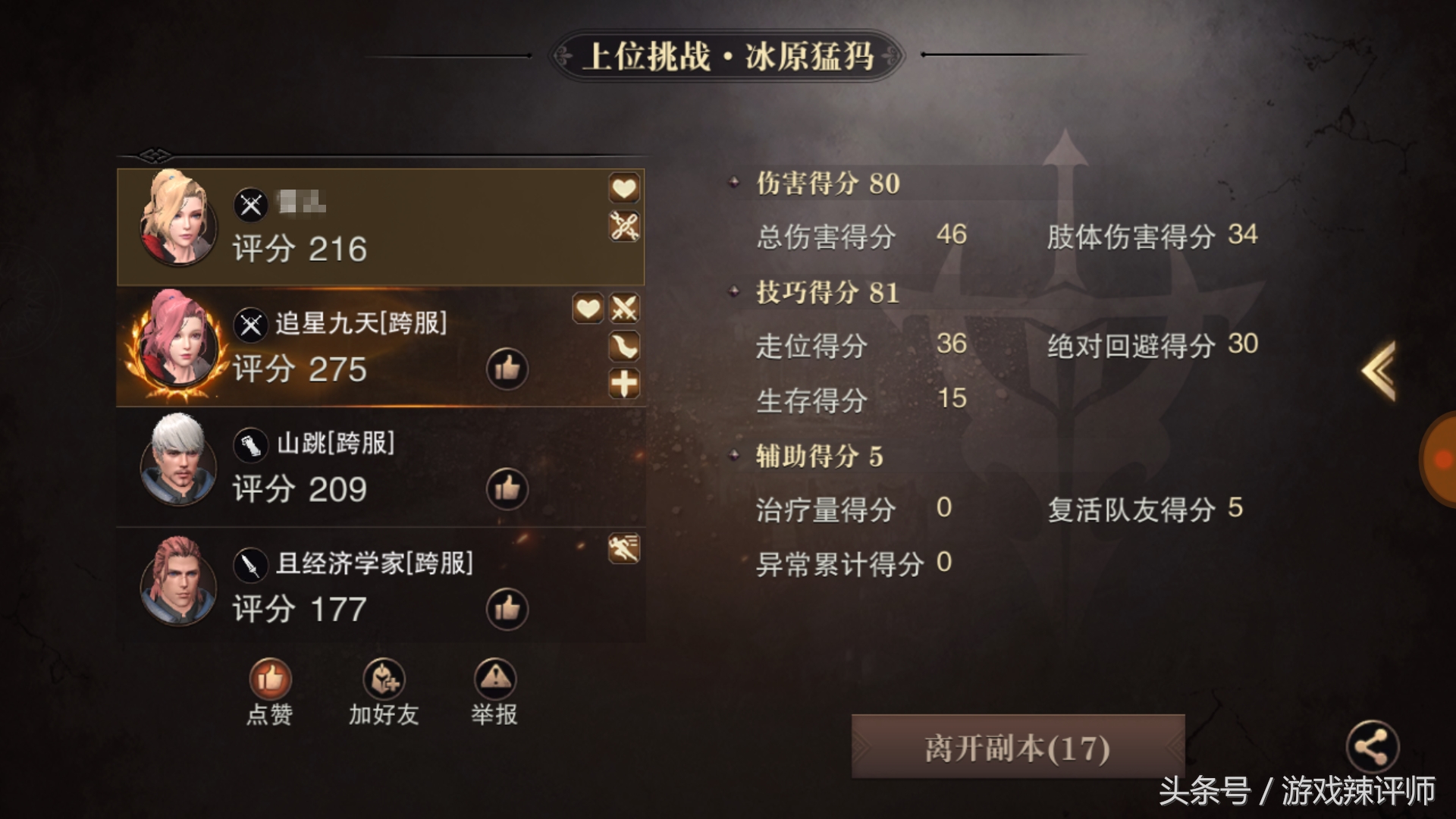 笔者现在的渣渣(笑~)数据,匹配野队下任何本结算评价时基本是黄金以上,很多情况下都是白金,即使分数不是最高,也可以拿到白金评价。只要你能掌握好自己的进攻节奏,拿白金评价就跟喝水一样。