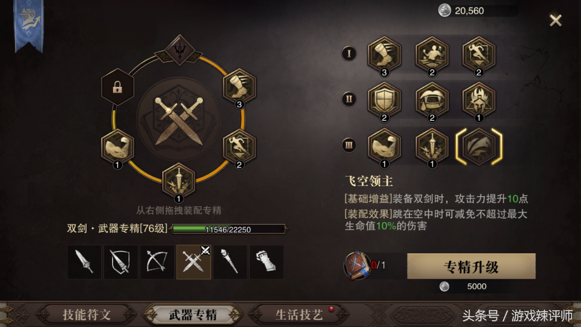 再说说符文方面吧,我目前带的是空斩·天翼(1阶,作为副输出),乱舞·连破(3阶,伤害相当高,以后会慢慢往上升的),告死终章·精进(笔者选择精进)或者告死终章·克制,这个有些争议,如果对自己的进攻节奏比较自信,可以选精进,如果担心大招打不满而耐力又不够可以选择克制,这个看个人吧。