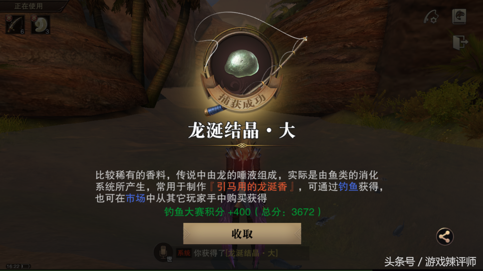 生活玩法其他的几个感觉没什么可说的,重点说说钓鱼吧,对于平民来说,钓鱼真的是发家致富的一大捷径。笔者强烈推荐在贝尔老爷子那里买金币鱼竿,用了之后你就会发现这几竿子下去的收益会远远大于鱼竿的价钱(尤其是运气爆棚钓上来大份的龙涎结晶~)。鱼饵的话不强求,金币多的同学可以买点黑蚯蚓,不愿花这个钱也可以就用一般的鱼饵,只不过是有地域限制罢了。