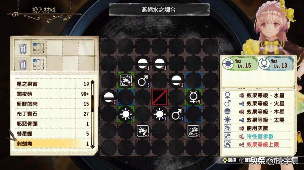 于是本作为了新接触的玩家能更好上手,非常贴心地加入了素材旋转功能,玩家可以将炼金釜的格子利用率最大化,并且本作中素材叠加不再会覆盖整个素材,仅会将重叠部分相互叠加,大幅度降低了炼金操作的难度,此外触媒功能依然保留,同时新增活性化道具,可以让炼金釜中的有色方格发生变化,能更好地提升炼金产物的品质。