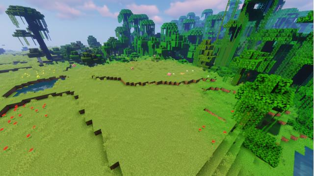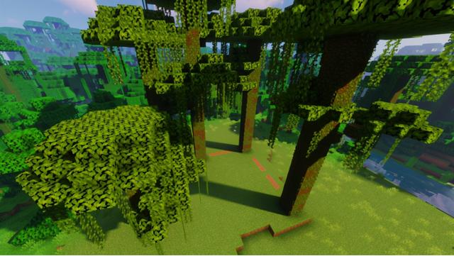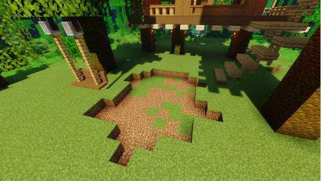 本次建筑选址在丛林平原交界的地方,既方便取高大树木的景色,地形平整在建造时也更加便利~