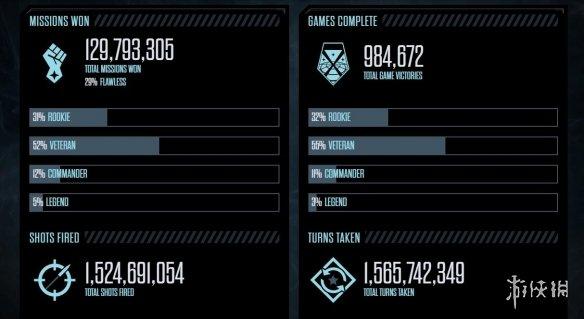 《幽浮2》不同难度玩家获胜任务比例(左)与通关比例(右)