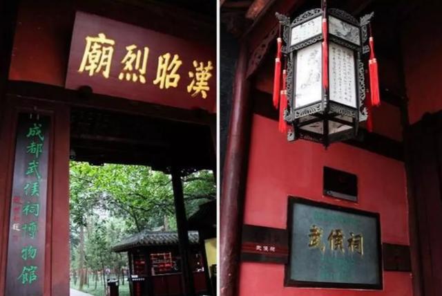 明朝时,诸葛亮和刘备的庙合并在了一起,武侯祠进门的地方,就挂着汉昭烈庙的牌匾。