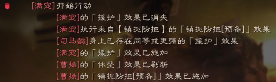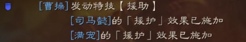 2)满宠(下令人)让曹操(受令人)【援护】所有友军,而被【援护】司马满宠才是实际获得【援护buff】的人(受益人),曹操身上此时并没有【援护buff】。