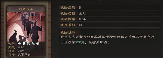 1、简单来说,该战法综合援护、休整、驱散三种效果,但有条件限制: