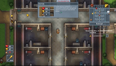 玩法也与一代雷同,在游戏中玩家有三项基本数值:血量、体力与戒备值,进入监狱后需要遵守监狱中的各项规则,按时签到、工作、吃饭、洗澡、完成NPC派发的任务,维持血量、体力及低戒备值。
