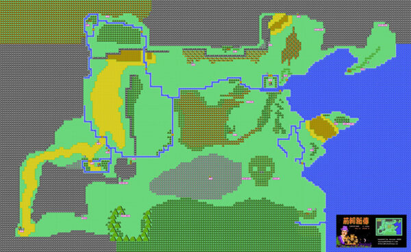 后来搜到了玩家自制的原比例地图后,感觉这么比喻还是不太恰当,FC《封神榜》应该是完全的架空世界,地图自然也就怎么开心怎么胡乱画。虽说《封神榜》是中国古代神话,但传说这个东西向来都会被民间传得有一搭没一搭的,与其跟现实中国地理生搬硬套地对应,倒不如任由制作组天马行空自我发挥。