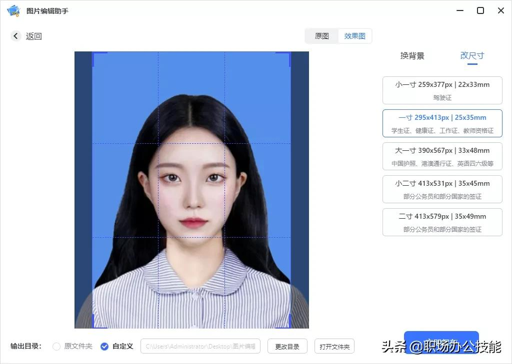 该功能页还内置了证件照尺寸,一寸、二寸、小一寸、大一寸、小二寸全都有。
