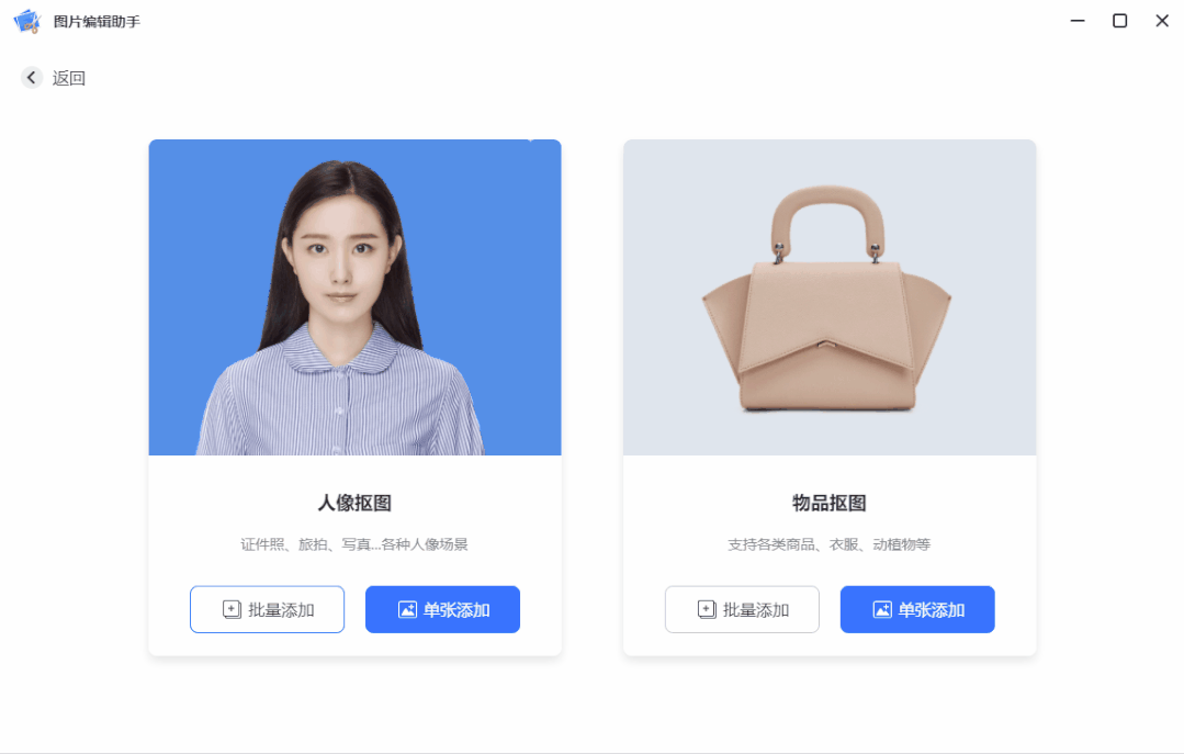 如果你有大量的图片,它也支持一次性批量抠图,「批量添加」图片后,几十张图片也能瞬间到位!