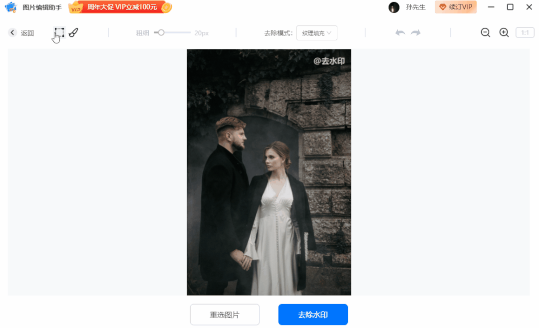 平时你用PS给图片去水印,可能需要折腾半天,在这里也能自动消除。