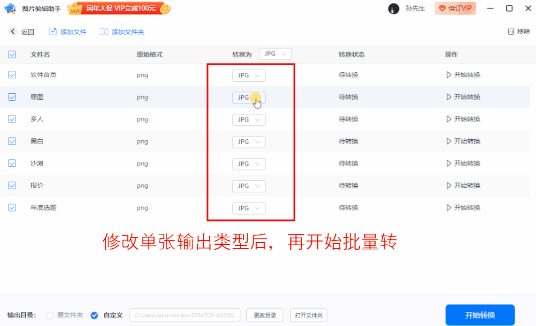 想要追求效率可以批量转换,打包上传待处理的文件夹,选择转换后格式开始操作。