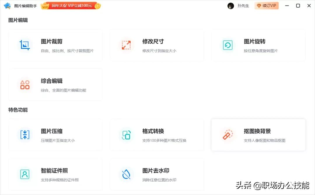 这款软件兼具基础图片编辑和高级特色功能,借助它,可以快速完成转换格式、压缩图片、抠图换背景、制作证件照、去水印、加滤镜等操作。