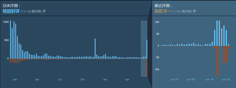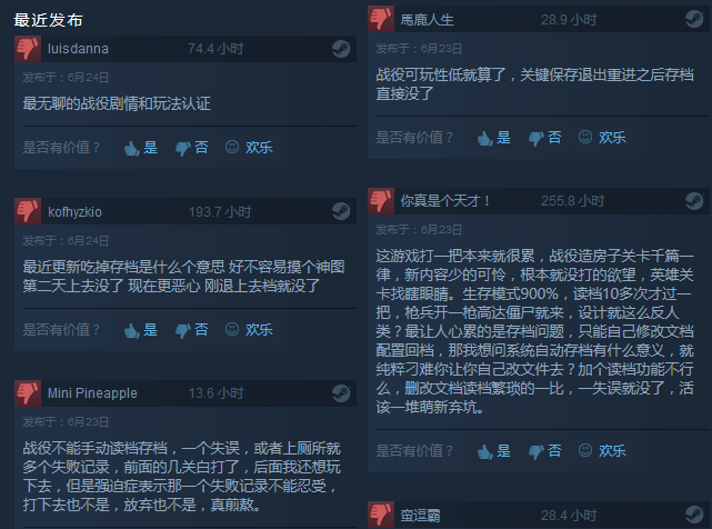 从目前stean页面的评价来看,《亿万僵尸》最近评价为“褒贬不一”,玩家们由于心理预期差距大、存档问题、剧情难度问题纷纷表达了自己的不满。
