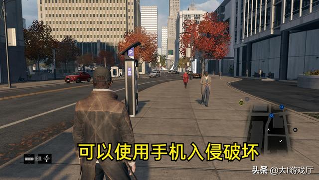 因为里面主打的黑客,在游戏中通过一个小小的手机,就能入侵任何的电子设备制造混乱,还能扫描到街边NPC的个人信息,这种游戏在当时还很新鲜。