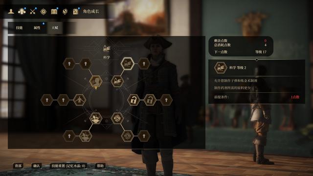 不过要注意的是一旦重置,技能、属性、天赋还有主角已经装备的武器和防具都会一并重置,虽然自由度很多高但却繁琐,所以还是建议遵循系统的提示来进行分配。不过并没有说就限制死了分配模式,只是系统建议的分配是比较合理的。比如笔者初期选择的是法师,但是天赋却没有点了法师最需要的科学,由于法师攻击消耗魔法,虽然能够无视护甲造成高伤害,但是回复速度慢,如果没有充足的药剂补充很难发挥法师的长处。加上前期商店内的药剂价格十分地奸商,性价比完全比不上点亮科学天赋后能够进行原料采集加以合成地药剂,所以无论你选择哪一个职业定位游玩,笔者都推荐初期点亮科学天赋第一等级。