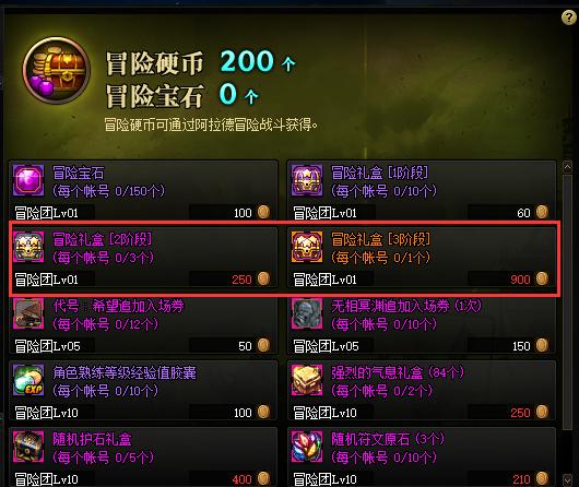 在管理将校杜罗西处完成任务可以获得两个Lv100传说装备自选礼盒;在冒险团商店用900个冒险硬币兑换1件Lv100传说装备自选礼盒。
